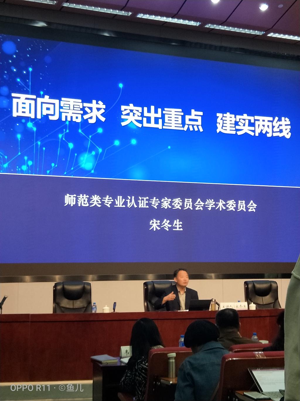 宋东生教授以“面向需求 突出重点 建实两线”为主题,围绕“常态三步走、吃透指导书、确保过受理、进校保通过”四个方面,用专业的眼光、通俗的语言、丰富的案例详尽地阐述了师范类专业认证工作的重点和关键。