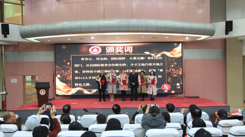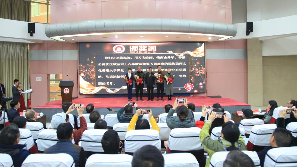 颁奖典礼上,校党委副书记葛平宣读了玉溪师范学院2020年校级优秀教学成果奖获奖项目名单,参会人员共同观看了获奖团队视频短片,主持人现场宣读了教学成果奖颁奖词,学生代表分别为获奖教师团队献花,参会的学校党政领导及嘉宾分别为《湄公河次区域民族民间文化传习馆服务民族文化自信的教育与创新》《以“传承、融合、创新”三大平台为基础的“234”应用型艺术人才培养体系》《教育国际合作育人 泰语“2+2”人才培养实践创新与成效》等9个教学成果奖获奖团队颁发了荣誉证书。