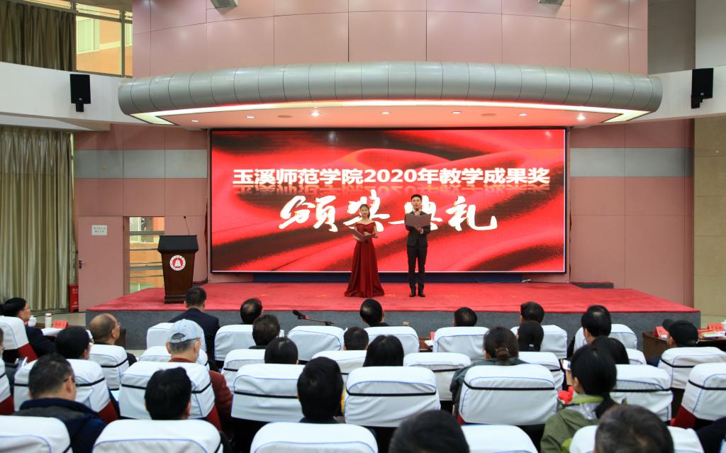 玉溪市教育体育局相关领导,玉溪农业职业技术学院、玉溪技师学院等学校领导和嘉宾,玉溪师范学院党政领导、2020年教学成果奖获得者,教务处全体人员,教学督导团全体成员,各学院、部门副处级以上干部、系主任、专业负责人、教学秘书、师生代表参加会议,会议由文学院承办,教务处处长安镇宙主持,颁奖典礼由文学院新闻学专业学生郑佳涵、吴翼君主持。