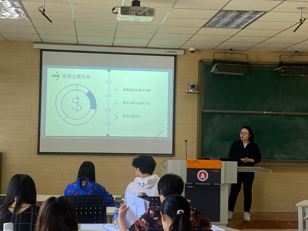 期间,杨丽君教授代表评委发言,并向参赛教师分享了她在课程思政建设方面的心得体会。选手代表郭昆以自己对课程思政的教学理念为出发,发表了对课程思政的看法。