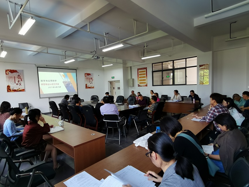 2021年4月29日下午,数信学院在实训大楼A栋301会议室召开数学与应用数学师范专业认证工作推进会。数信学院全体教职员工参加会议,数信学院副院长李周红教授主持会议。