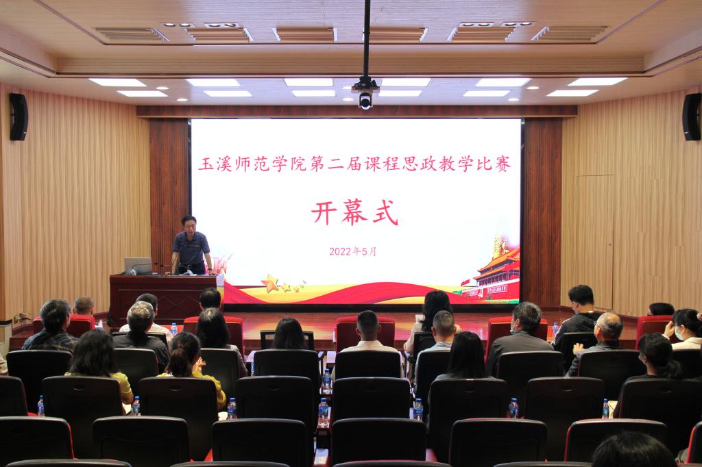 5月14日,学校第二届课程思政教学比赛开幕,上午八点,开幕式在聂耳和国歌研究院报告厅举行,校党委副书记葛平,副校长章新,比赛领导小组组委会成员、评委、部分参赛选手及工作人员参加开幕式。开幕式由教务处处长安镇宙主持。