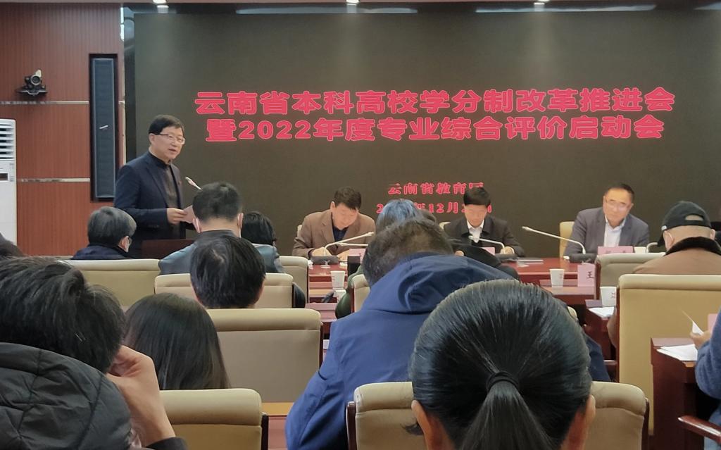 12月22日下午,云南省本科高校学分制改革推进会暨2022年度专业综合评价启动会线下会在昆明召开。会议总结本科高校学分制改革推进情况和专业建设情况,交流学分制综合改革和专业综合评价经验和做法,部署下一步本科高校学分制改革和专业综合评价工作。
