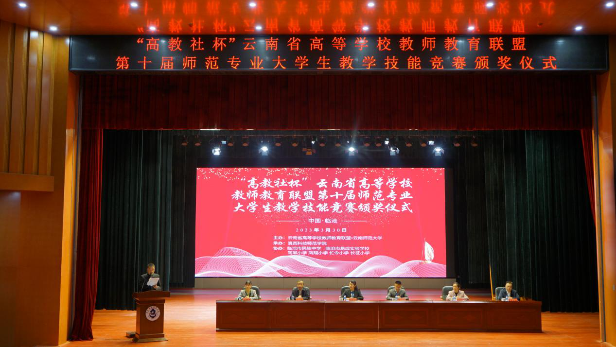 “高教社杯”云南省高等学校教师教育联盟第十届师范专业大学生教学技能竞赛的颁奖礼于2023年3月30日在临沧滇西科技师范学院落下帷幕。