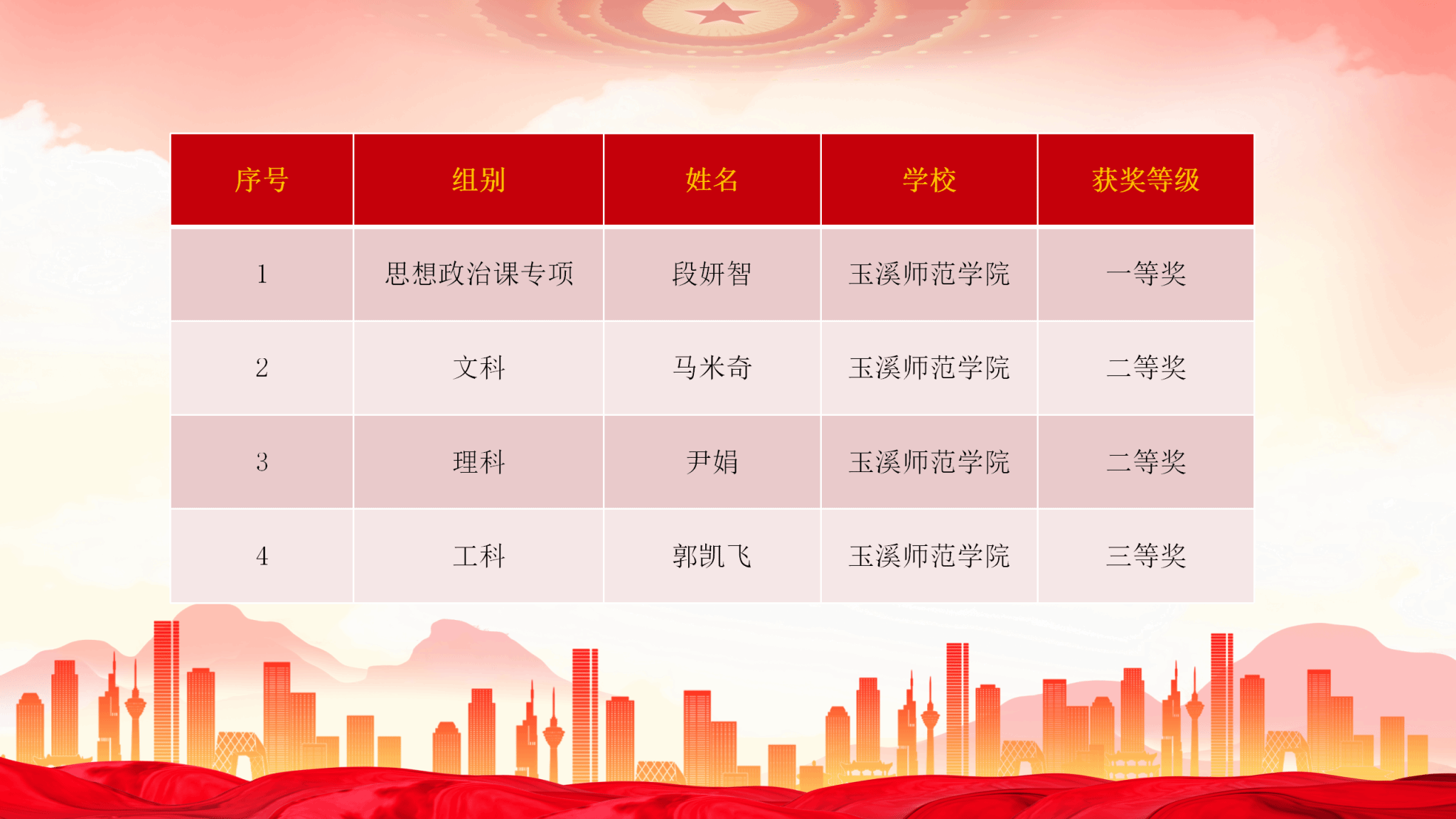 近日,云南省总工会、云南省教育厅发布了第二届云南省高校青年教师教学竞赛结果,玉溪师范学院参赛教师在多个组别喜获佳绩:马克思主义学院教师段妍智获一等奖,教师教育学院教师马米奇、地理与国土工程学院教师尹娟获二等奖,农学与生物科学学院教师郭凯飞获三等奖,充分展现了青年教师扎实的教学功底与昂扬的育人风采。