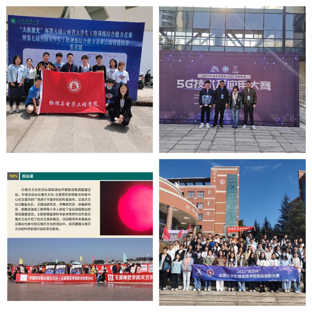 学院紧紧围绕“强基固本,实践育人,求是致用”的思想,以学生为中心,整合多方资源支持学生发展,在长期的实践育人中取得了显著的成果。学院加强实验中心和协同育人实践基地的建设,建有校外教育实习、专业实习基地20余个,基本形成了校内、校外一体化的实践教学体系。依托校外协同育人实践基地,为学生双创实践能力的培养提供肥沃的实践土壤,推动学生双创能力理论到实践转化。三年来,学院积极组织学生参加各类专业竞赛,形成完备的指导教师团队,早培育,重实践,出成果,学生在各类创新创业大赛中成绩显著。学生参加大学生创新创业训练计划项目获得立项26项(省级立项10项),全国大学生数学建模竞赛中15人获得国家二等奖、21人获得省级三等奖,大唐杯全国大学生移动通信应用创新大赛中获得省赛一等奖2项、二等奖4项、三等奖13项,“高教社杯”云南省高等学校教师教育联盟第八届师范专业(物理)大学生教学技能竞赛中2人获省级二等奖、2人获得省级三等奖,全国大学生工程训练综合能力竞赛云南赛区竞赛中省级银奖1项、省级铜奖2项,“挑战杯”云南省大学生课外学术科技节作品竞赛中3人获得三等奖,2022robocom机器人开发者大赛中2人获得国赛一等奖、2人获得省赛一等奖、5人获得省赛三等奖,2022中国机器人及人工智能大赛3人获得国赛三等奖、3人获得省赛二等奖、3人获得省赛三等奖,职业技能大赛16人获得省级奖励,2023年云南省职业技能大赛中1人获得省赛冠军。